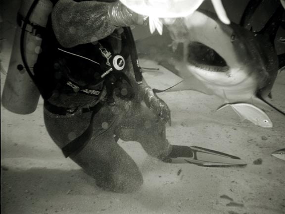 These photos were taken while on a shark dive where the dive master wore an entire suit of chain mail and fed the sharks as though they were his personal pets. Beware of dog, my eye!!!!