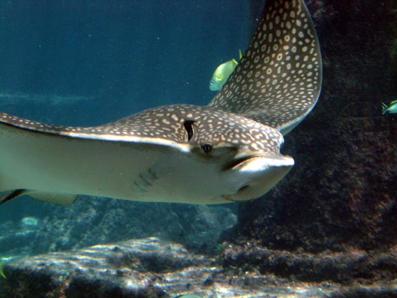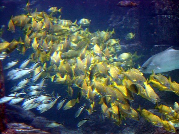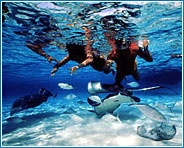 At last, the Bahamas. We stayed at the Westwind I resort in Cable Beach, Nassau. Our daughter and son-in-law, Angie and Pete, joined us for this trip. The diving here was as you might expect; excellent! This is where we took all of the shark dive pictures, at a dive site known as the Bahama Mama. Caribbean reef sharks from 4 to 6 or 7 feet long. Not huge, but big enough to do some serious damage! I definitely recommend the shark dive as well as the Nassau Scuba Center who we did all of our diving with. The exceptional crew and staff made this a memorable diving vacation. If you get the chance, the new Paradise Island resort, Atlantis, is worth the trip over to the island. The indoor aquarium was awesome; some of the pictures above came from there. In fact, the first sting ray shown is approximately 7 feet across the wings. Afterwards, head back across the bridge to a place called Pirates for some lunch. Good service, great food, cool atmosphere! All in all, we had a really great time. Now we're looking forward to the Bonaire trip in October '03.