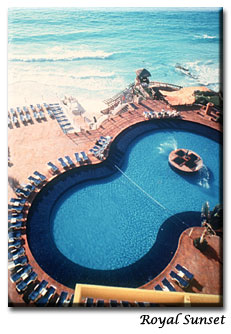 This is the Royal Sunset in Cancun, Mexico. It is our home resort and is all inclusive. We enjoy spending our vacation time there once every couple of years. Nice place with a lot of activity available within walking distance. Just look at that water; no air brushing here! The white sand is actually crushed coral which does not retain heat, so you can walk around barefoot all day even in the height of summer. Only 40 miles south and a short ferry ride across the water is Cozumel, which in our opinion, has some of the best diving in the world (at least in the top 5).