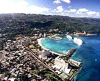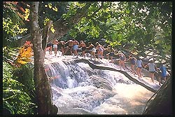 We decided not to dive here, regrettably, so we went to Dunn's River Falls, a 600 ft. long natural step-type formation where the river drains into the ocean. As part of this tour, we went to a small nature preserve on the beach where we saw many native animals, plants, birds, etc. It was a fun trip. Then, boo hoo, the cruise was over. Oh well, the Bahamas trip in March '03 isn't that far away!